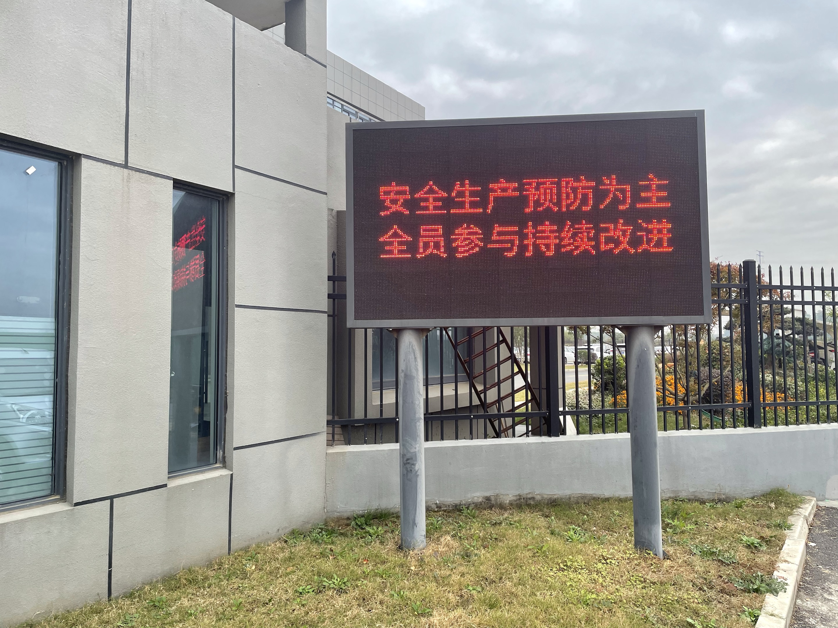 廠區(qū)重點出入口設(shè)立安全生產(chǎn)作業(yè)標(biāo)語,時刻提醒著大家要把安全牢牢地放在工作的首位,提高全員安全作業(yè)意識。